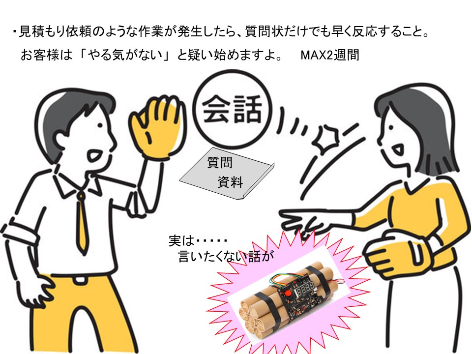 見積もり依頼のような作業が発生したら、質問状だけでも早く反応すること。