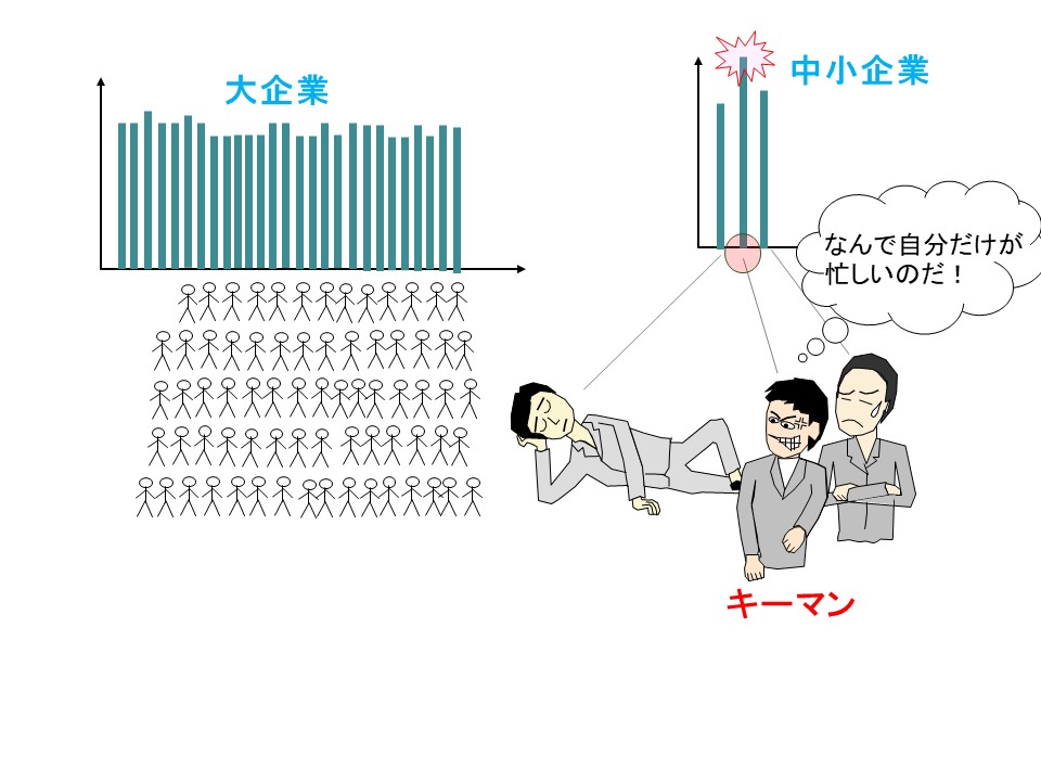 中小企業では皆が近い分、忙しい人とそうでない人の違いが分かりやすいです。