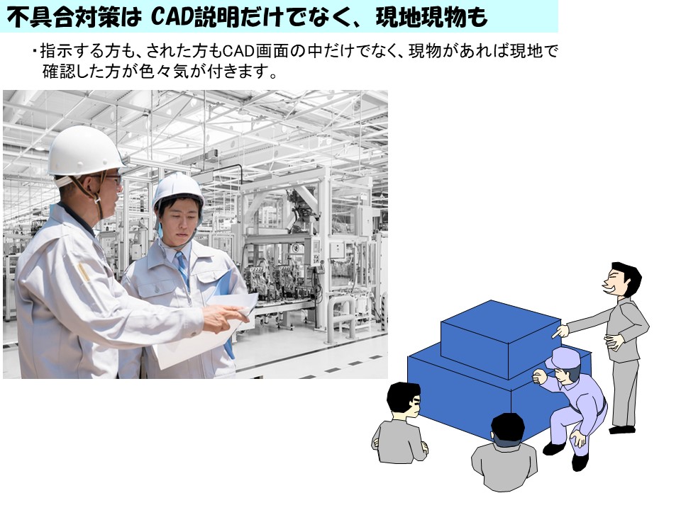 - 不具合対策は CAD説明だけでなく、現地現物も